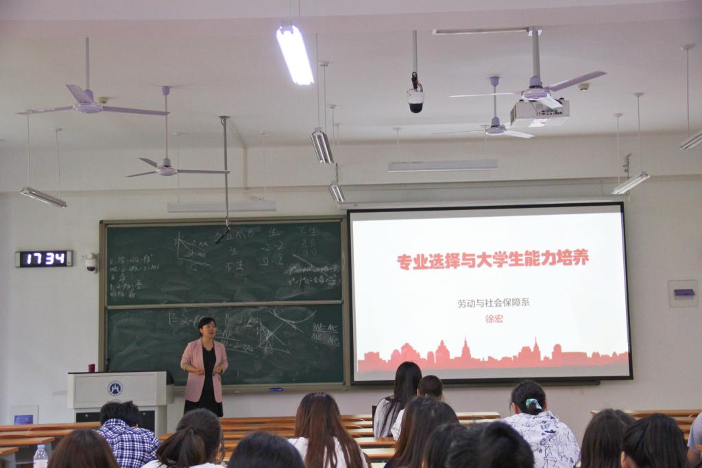 (通讯员 唐丹妮 摄影 李想)5月21日下午五点半,我院“公管大讲堂——走进圣井系列”第四讲在8106教室顺利举办。此次讲座的主题是“专业选择与大学生能力培养”,主讲人是我院劳动与社会保障系系主任徐宏老师。我院2020级学生积极到场聆听。