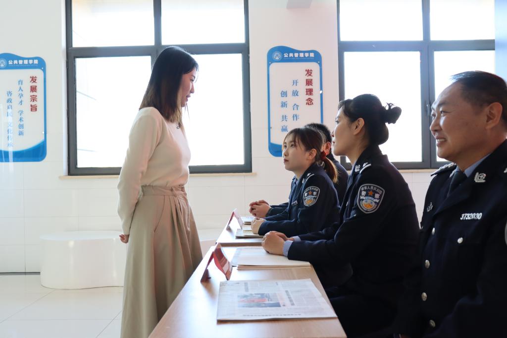 在普法宣讲后,四位警官根据他们在警局的工作经验通过法律宣讲与案例咨询一一解答了同学们的问题。殷航警官强调了大学生树立法律意识的重要性,并为大家解答了一些大学生应当遵循的基本法律法规;于子涵警官通过生动鲜活的真实案例和幽默风趣语言为大家讲解了大学生违法犯罪所带来的严重后果,就现阶段大学生上当受骗和违法犯罪的现状、特点提出预防建议。她强调大学生要加强自我保护和法律意识,不要轻信陌生人,谨防诈骗。他们在咨询中提醒同学们要大学生要主动去了解法律知识,与人和谐相处,不打架斗殴,做知法、懂法、守法的好公民。法律宣讲与案例咨询这两个互动环节,同学们积极参与,提出有关法律法规方面的疑问,他们耐心回答并与部分同学进行单独交流,为他们答疑解惑,让同学们对相关法律知识有了更深的了解,增强了同学们的法律意识。
