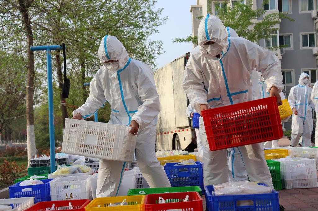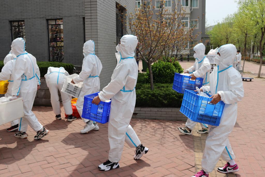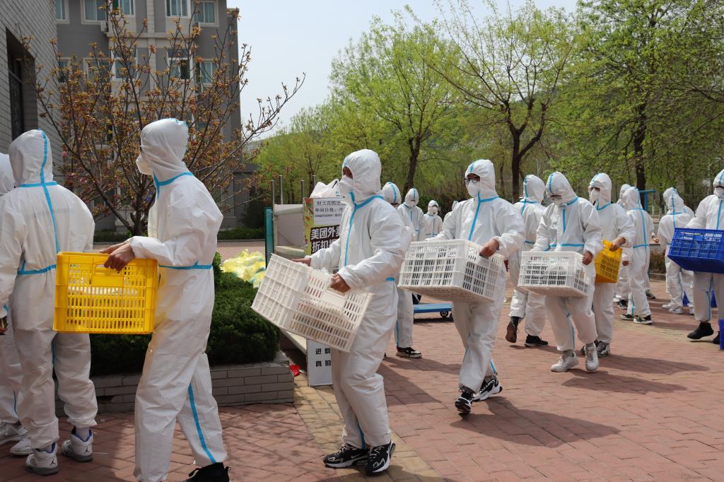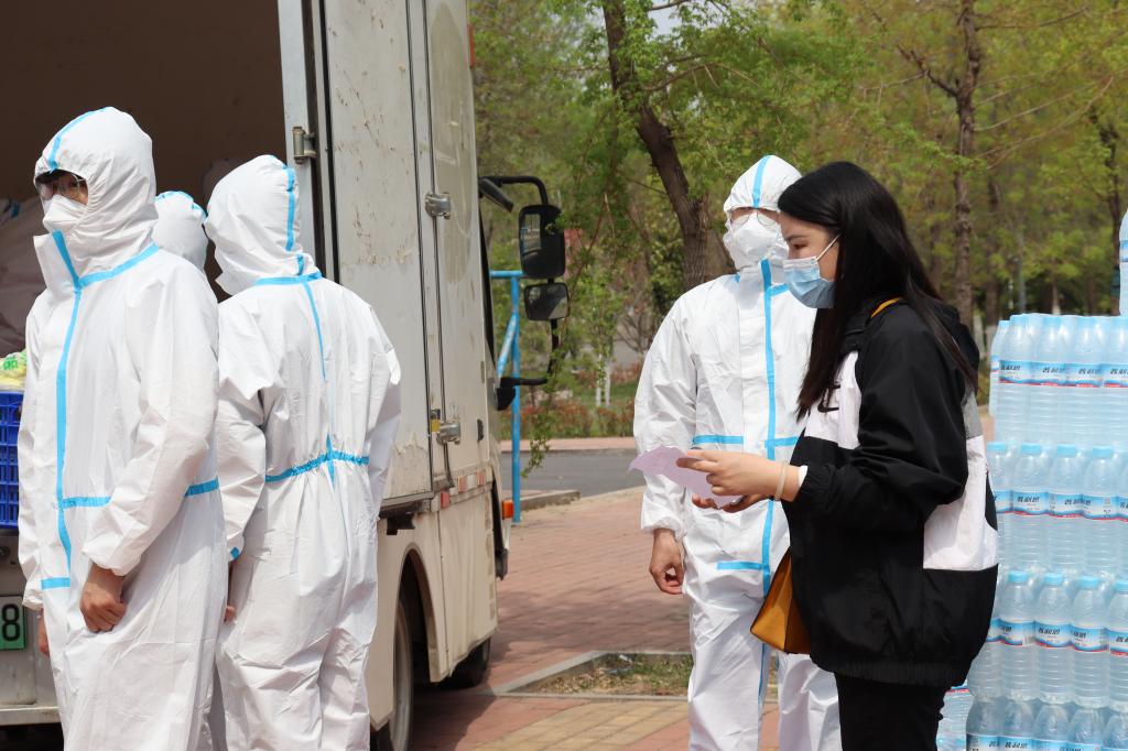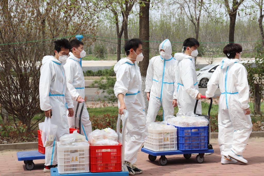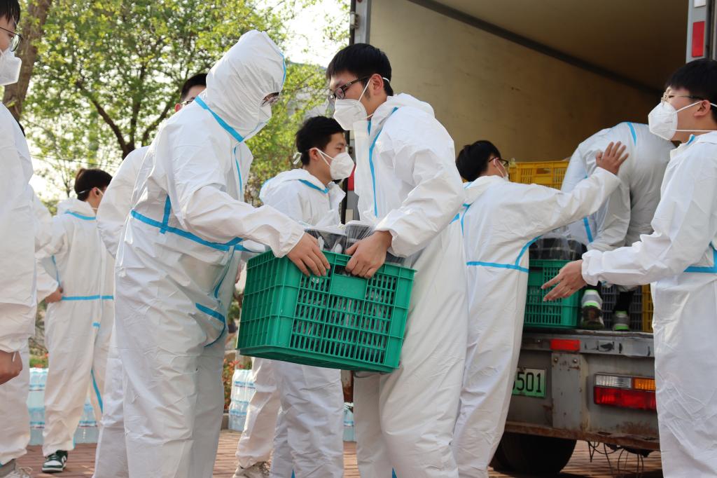 志愿者于4月9日负责四号宿舍楼隔离学生送餐任务。