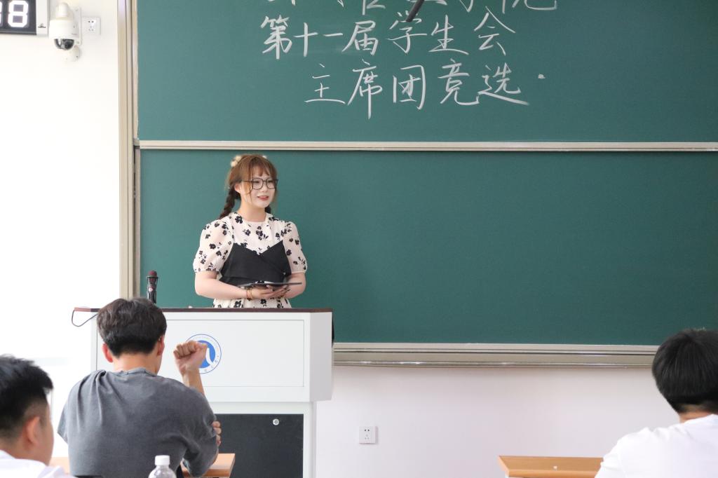 第十一届学生会主席团竞选于圣井校区8212教室顺利召开。会议由学生会副秘书长邹光天主持,院党委副书记王坤、学工办主任张辉、团委书记王超、辅导员韩步彤出席,我院14位学生会干事参与竞选,全体学生会成员以线上线下相结合的方式共同参加。