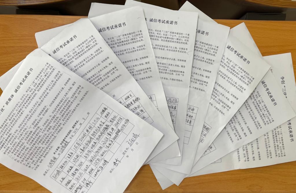 的优良风尚,我院学子要严肃考风考纪,诚信考试。随后各班组织学生有序签诚信考试承诺书,并提醒同学要积极复习,诚信考试,严禁作弊舞弊等行为发生。期末在即,同学们要合理安排复习时间,利用碎片化时间,针对不同学科进行不同的复习时间分配。在复习周要调整好考试心态,保证作息规律,饮食规律,以最轻松之姿去应对期末考试。在考试过程中每位考生要遵守考场纪律,服从监考老师的管理,诚信考试,不作弊、不帮助他人作弊,做到实事求是,诚信考试。