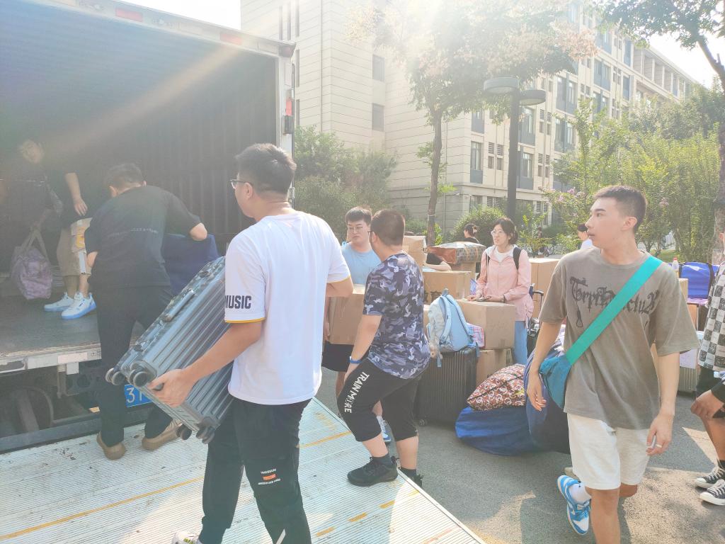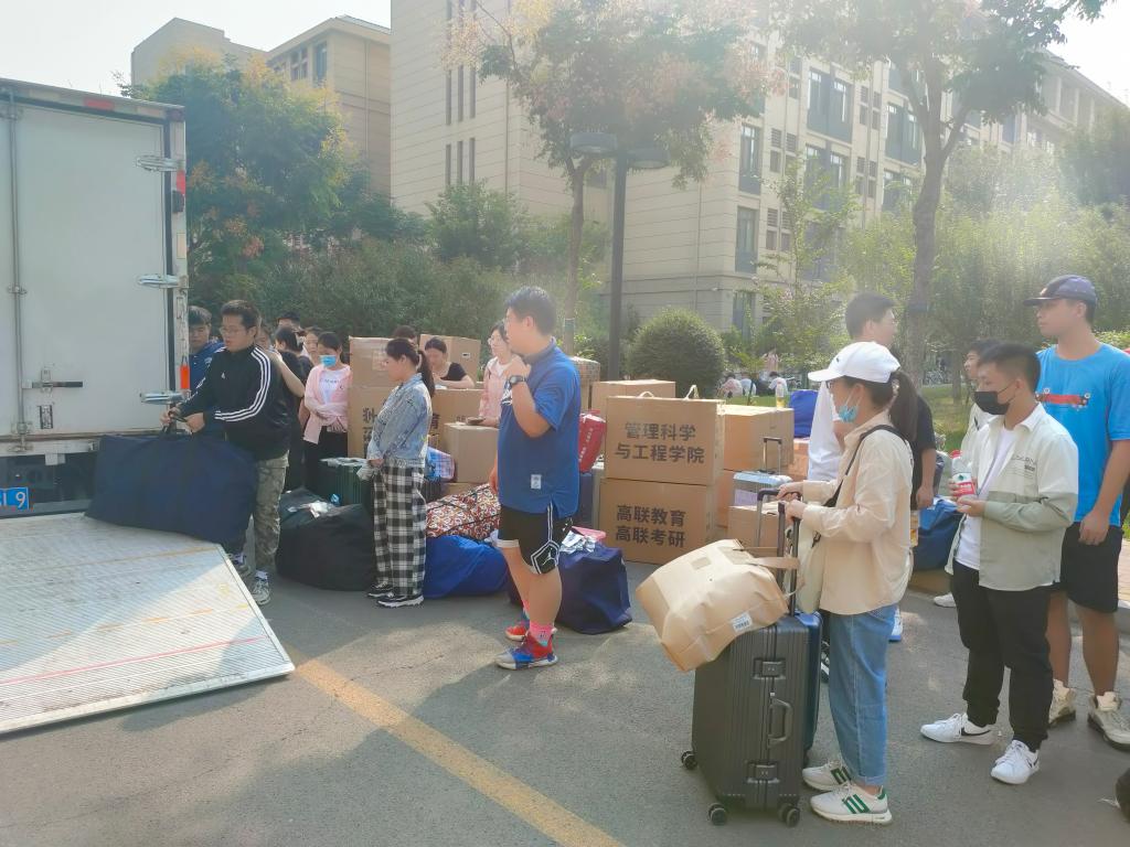 团结奋进,互帮互助是我院一直奉行的优良传统。搬迁过程中学院领导班子亲自坐镇,指导现场工作的有序进行。20级和21级志愿者帮助未返校同学搬迁行李物品,在学院领导的指挥下搬迁工作有序顺利举行。我院学子众志成城,团结一心,整个搬迁过程组织合理,安全有序,切实保障志愿者人身安全的同时顺利完成了搬迁工作。