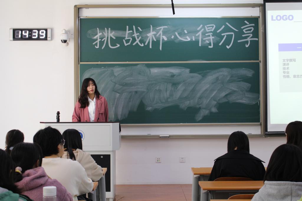 宗海柠从“选题”、“队伍组建”、“挑战过程”三个方面向同学们详细介绍了“挑战杯”的相关知识,讲述了她参与“挑战杯”的经历,在科研方面为同学们提供了许多的经验和指导。