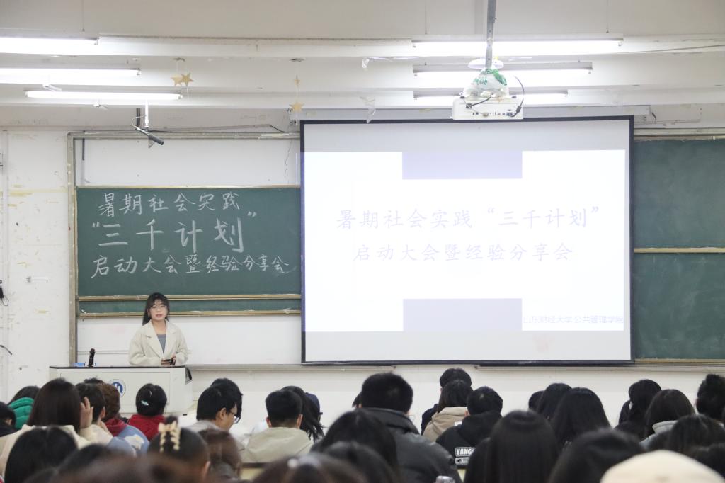 首先,实践创新部副部长李学励向同学们介绍“三千计划”活动的相关内容。她从“什么是三千计划”、“三千计划大致流程”、“如何参与三千计划”等几个方面,详尽阐述了“三千计划”的重要意义及参与方式,使同学们对“三千计划”实践调研有了初步的了解。