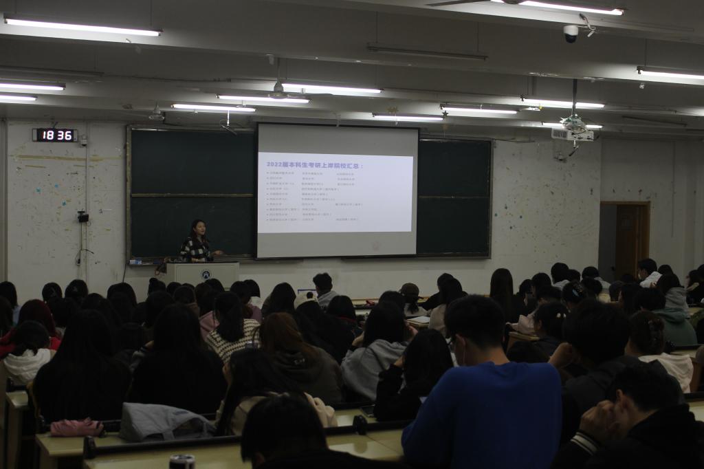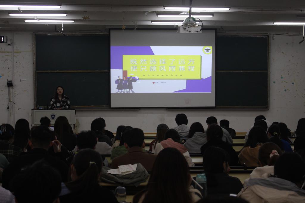 (通讯员 成楚楚 摄影 田怡帆)4月3日晚,我院2024届级毕业生考研规划与就业指导专题讲座于圣井校区5-206教室顺利召开。本次讲座由就业办主任韩步彤主讲,2020级全体学生参加。