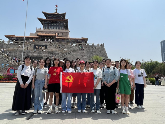 志愿工作结束后,同学们来到位于泉城广场东侧的爱国主义教育基地——济南解放阁。进入一楼展厅,映入眼帘的塑雕——济南战役英雄群像,向我们展示了昔日革命烈士们的勇往直前和无私奉献。地面上镌刻着济南战役开始的具体时间以及作战部队等。此外,周围陈列了许多为实现济南解放而战斗的各阶段图示、战略路线以及济南战役的沙盘模型。之后,同学们参观二层展厅,这里陈列着济南解放后方方面面的显赫成就,这些成就背后无疑是一群为捍卫国家义不容辞献身的勇士们,一个个“出谋划策”的智囊,一个无时无刻不在发展进步、生机盎然的城市。