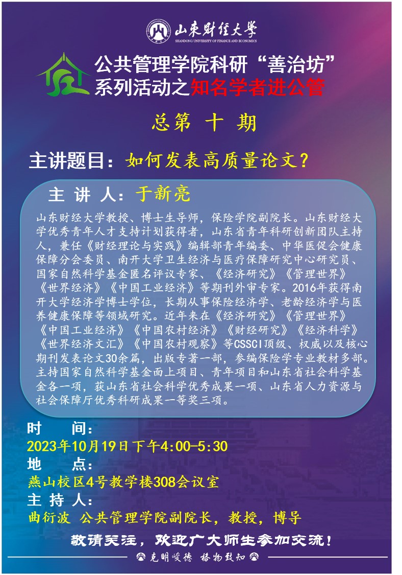 CQ9电子 科研“善治坊”系列活动之知名学者进公管总第十期:如何发表高质量论文?