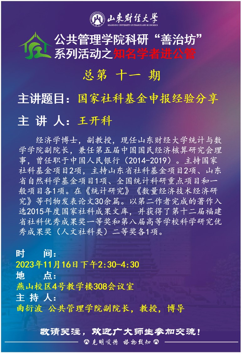 CQ9电子 科研“善治坊”系列活动之知名学者进公管总第十一期:国家社科基金申报经验分享