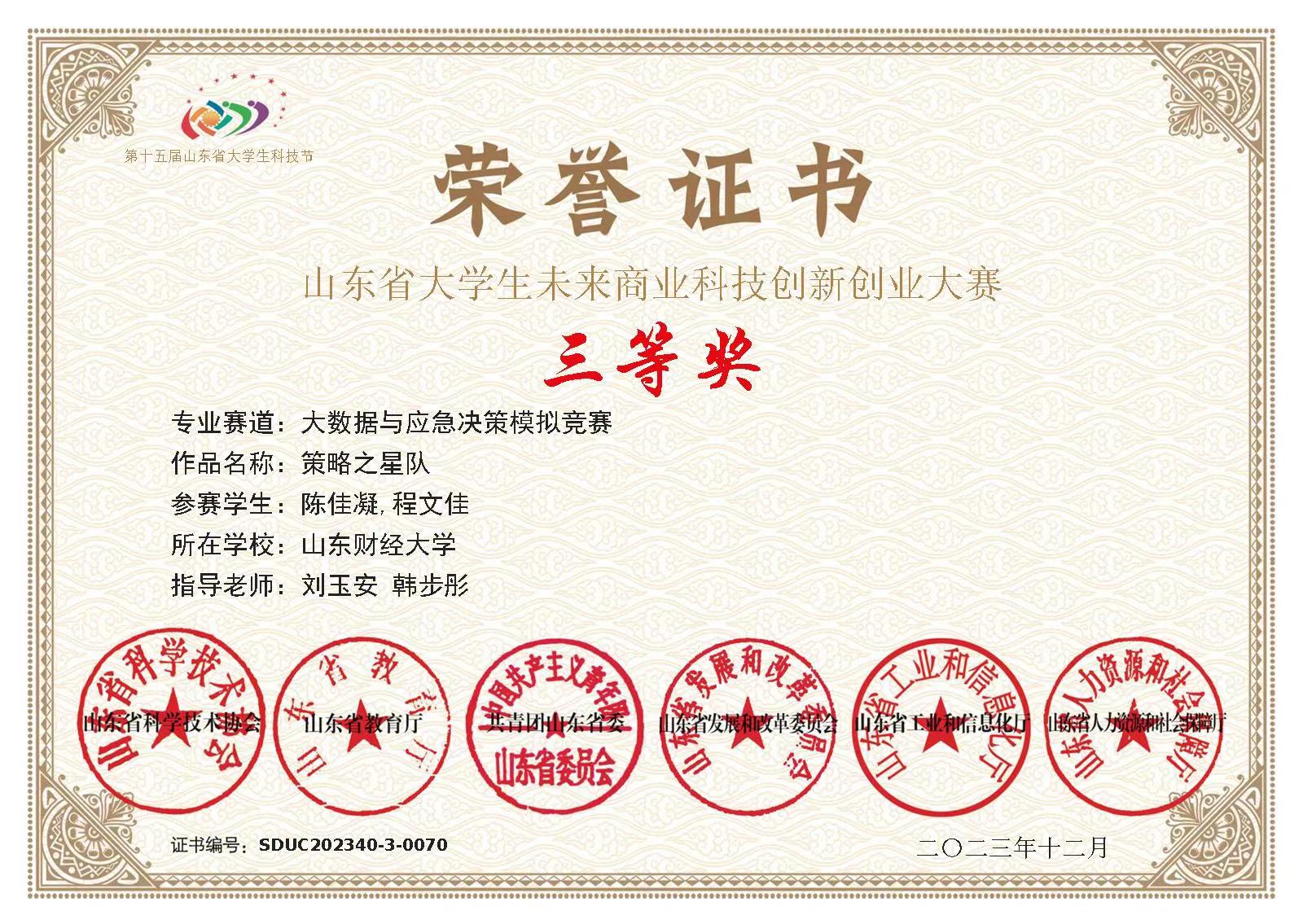 近日,从山东省科协获悉,由我院刘玉安老师和韩步彤老师共同指导的两支学生团队代表我校在第十五届山东省大学生未来商业科技创新创业大赛中分获一等奖和三等奖,刘玉安和韩步彤被评为优秀指导教师。