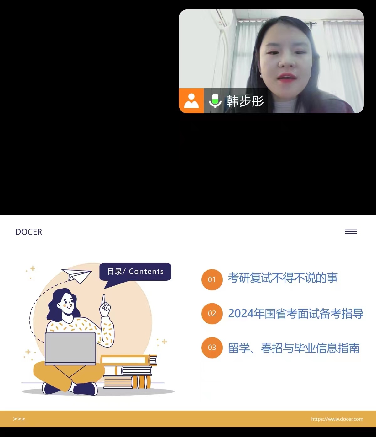 举办线上2024届毕业生就业升学专项指导讲座。此次讲座由学院就业办主任韩步彤主持,特邀CQ9电子