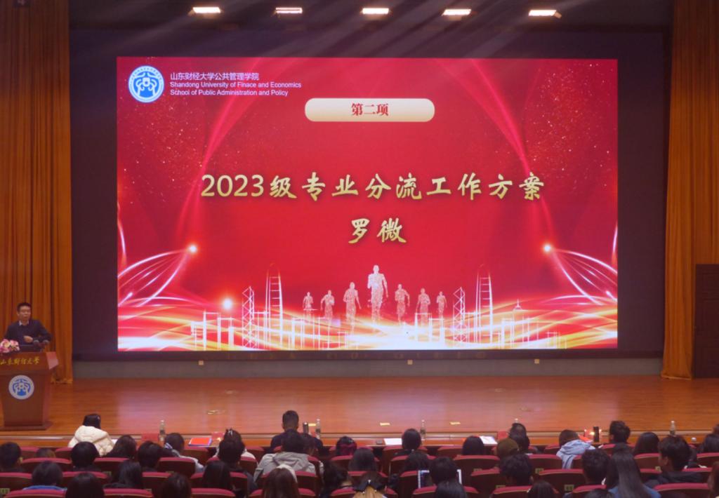 (通讯员 李星玥 摄影 刘珂瑜 王步霓)3月21日下午,我院2023级大类招生专业学生分流工作说明会在圣井校区图书馆一楼报告厅顺利召开。副院长罗微、城市与土地资源管理系主任韩琭、政府管理系主任邹涛、劳动与社会保障系副主任刘玉安、学工办主任张辉以及2023级全体学生参加了此次会议。会议由2023级辅导员张志斌主持。