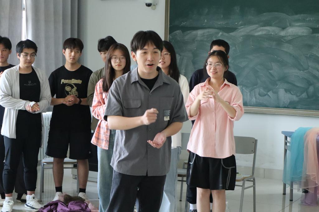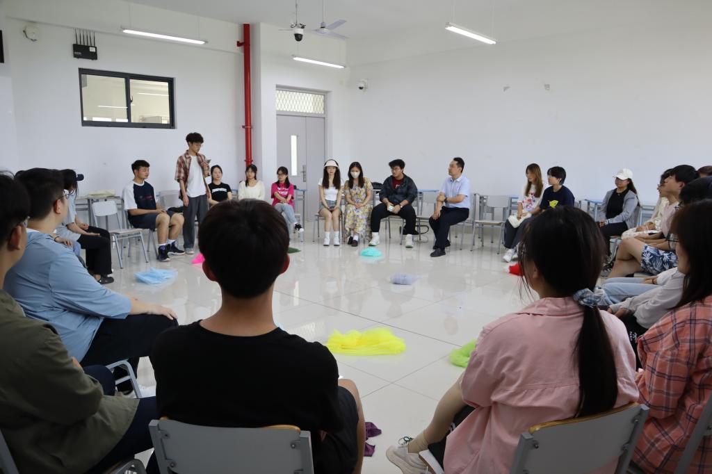 开展暖身活动——社会计量《家乡美》《相似圈》,刘洪涛组织同学们根据自己的家乡的方位与省份站在不同颜色彩纱代表的位置,同学们分别介绍了自己的家乡,展示了自己民族独特的语言以及各省份有代表性的地方特色表演形式,活动拉近了天南海北同学们之间的距离。刘洪涛对各民族同学带来的才艺给予了高度肯定,提出大家都要增强民族自信心与自豪感,每一个民族都是最棒的、最独一无二的。