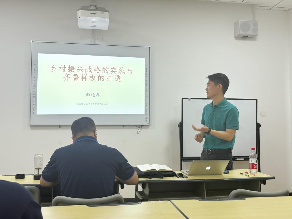 曲延春教授在本次报告中,从什么是乡村振兴战略、为什么要实施乡村振兴战略、乡村振兴战略提出的历史背景、乡村振兴战略面临的问题、如何推进乡村全面振兴五个方面,以丰富的调研场景、生动的特色案例、详实的内容知识向大家全面介绍了乡村振兴战略的实施和齐鲁样板的打造情况。