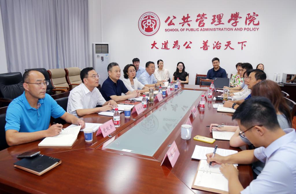 书记张红旗、院长贾海彦介绍了学院建设情况,表示将继续以公共管理一级学科博士点申报为龙头,全力做好学院各项工作,锤炼担当作为、干事创业的能力,推动学院实现内涵式高质量发展。