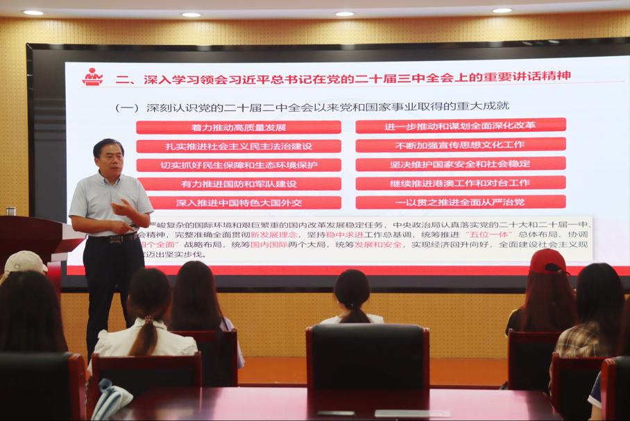 于圣井校区8-128会议室举行党的二十届三中全会精神学习专题党课。此次党课由学院党委书记张红旗主讲,学院部分入党积极分子和预备党员参加。