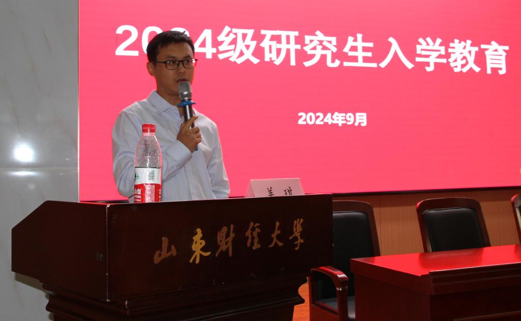 典礼结束后,姜琪为2024级新生进行入学教育,作了有关科研、论文写作主题报告。他从数据搜集、分析选题、文献阅读等方面详细介绍如何进行科研和论文创作,给予新生全面指导,强调研究生要打好基础,走好学问求解的每一步、主动思考勤于发问,在学习中成长,在成长中进步。