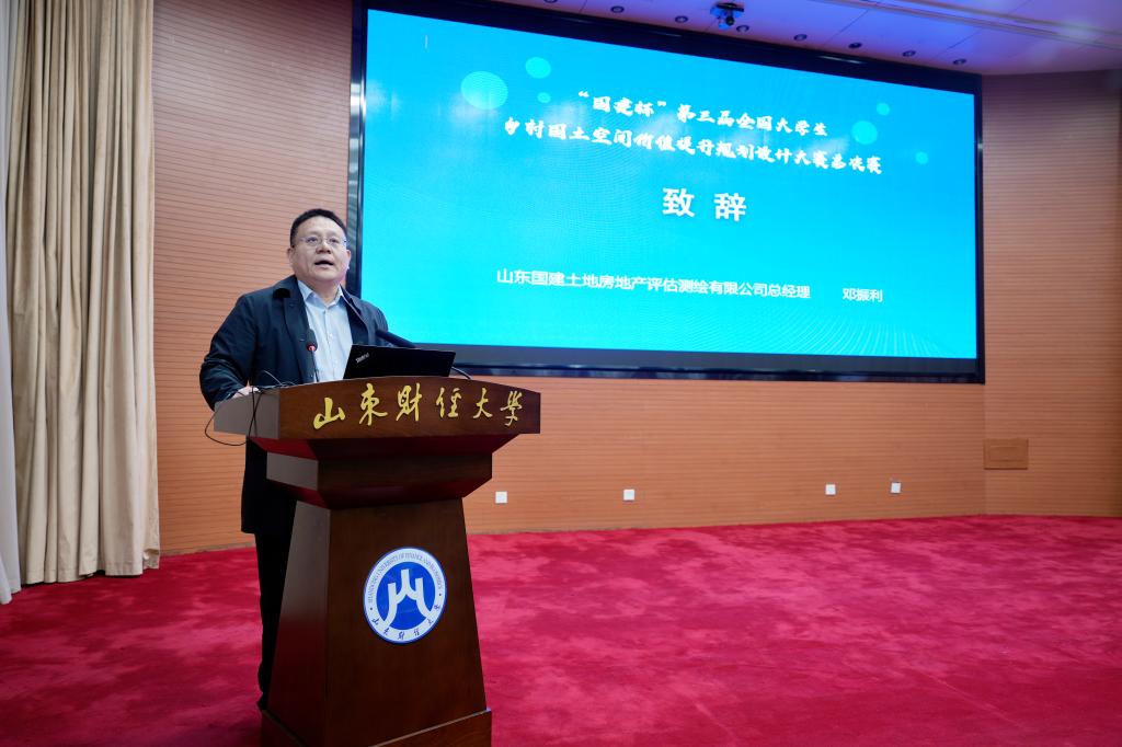 、土地科学与政策研究院承办,山东建筑大学管理工程学院、山东国建土地房地产评估测绘有限公司协办。本届大赛自2024年11月启动以来,吸引了全国11个赛区70余所高校、300余支队伍参加,历经省赛选拔、预评及网络投票等环节,56支优秀团队脱颖而出,晋级全国总决赛。来自中国国土经济学会、中国土地学会、中国城市规划学会以及北京师范大学、东北师范大学等高校专家学者,学校党政办公室、党委宣传部、教务处、校团委负责人参加。