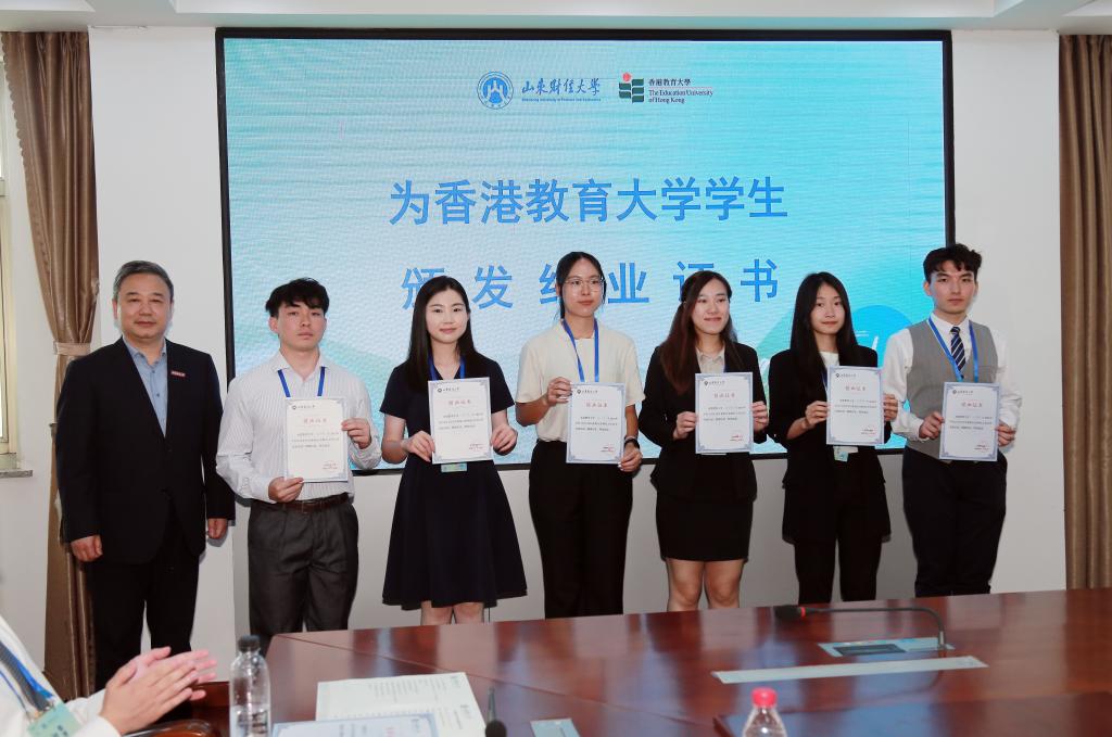 结业式上,播放了香港教大师生来访活动的精彩短片,短片从“文化溯源”“学术探索”“友谊长青”等维度,生动展现了两校师生的珍贵情谊与访问取得的丰硕成果。尹晓民、查玉喜分别为交流团师生颁发结业证书。