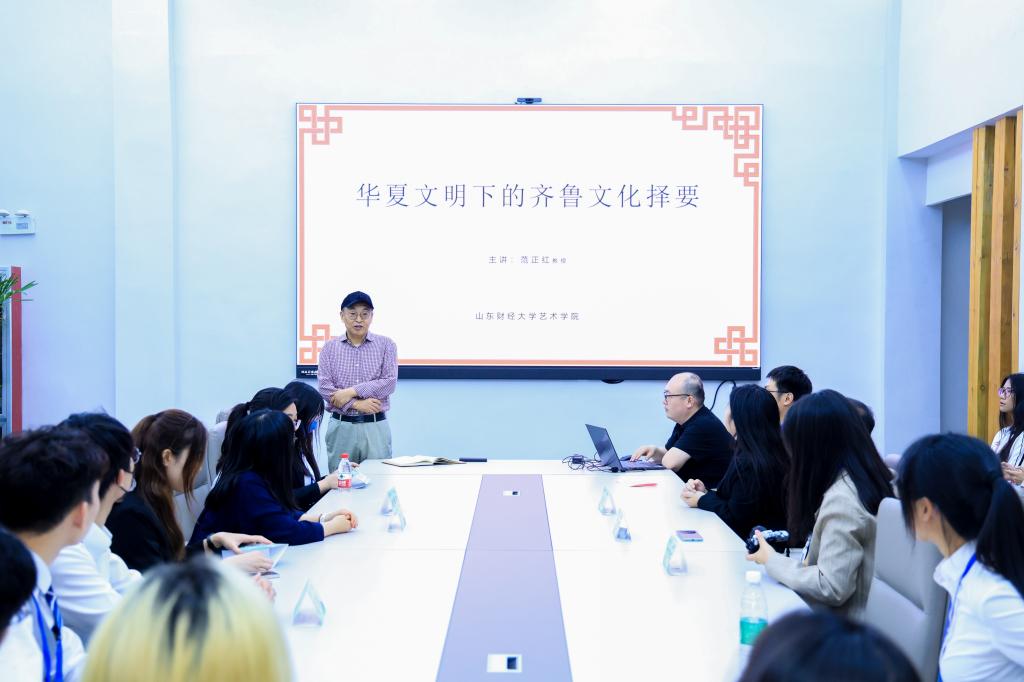 的深厚文化底蕴与学术积淀。围绕文化齐鲁、经略齐鲁、公共治理等主题展开研讨,拓宽专业视野,提升学术思维水平。通过寻声觅乐、漆扇制作、声乐展演等联谊活动,促进两校学子交流,增进文化认同与情感共鸣。登临泰山之巅、探访“三孔”圣地、品鉴省博珍藏,在文化研学中追溯中华文化根脉,领略齐鲁文化精髓。