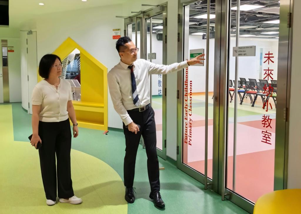 访港期间,在香港理工大学,贾海彦一行参观了智慧城市与空间大数据分析实验室,会见了建设及环境学院土地测量及地理资讯学系副教授刘信陶,深入了解香港在智慧城市顶层规划、地理信息产业发展及实景三维城市建设等方面的先进理念与实践经验。在香港教育大学,与教育发展与创新学院副院长何振声、社会科学与政策研究学系副教授肖汉宇会谈,围绕教育空间设计哲学、数智时代青少年发展与教育革新等主题进行了深入讨论,为后续开展实质性合作奠定了良好基础。