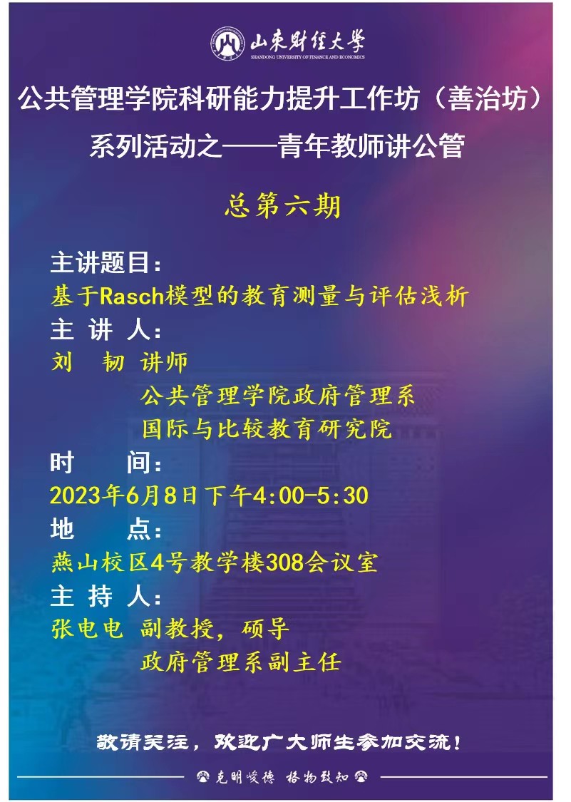CQ9电子 科研能力提升工作坊(善治坊)系列活动之——青年教师讲公管( 总第六期 )预告