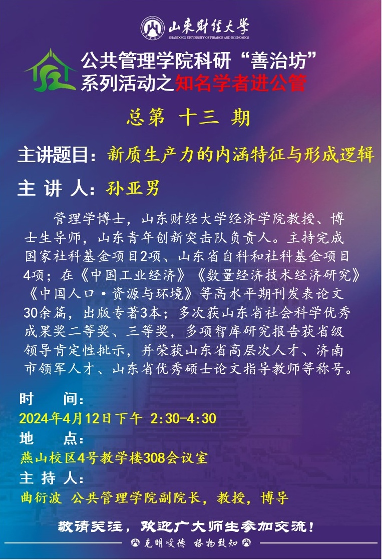 CQ9电子 科研“善治坊”系列活动之知名学者进公管总第十三期:新质生产力的内涵特征与形成逻辑