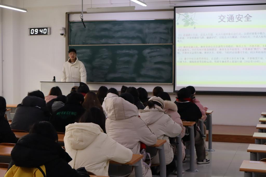 (通讯员 张心仪 摄影 刘珂瑜 王步霓 何叶)为严肃考风考纪,同时增强学生假期安全意识,12月18日至22日,我院于圣井校区8号教学楼开展“安全意识记心间,诚信考试我践行”主题教育班会。本次主题班会由2022、2023级辅导员张志斌老师组织召开,2022级、2023级部分班长代表主讲,两年级全体学生参加。