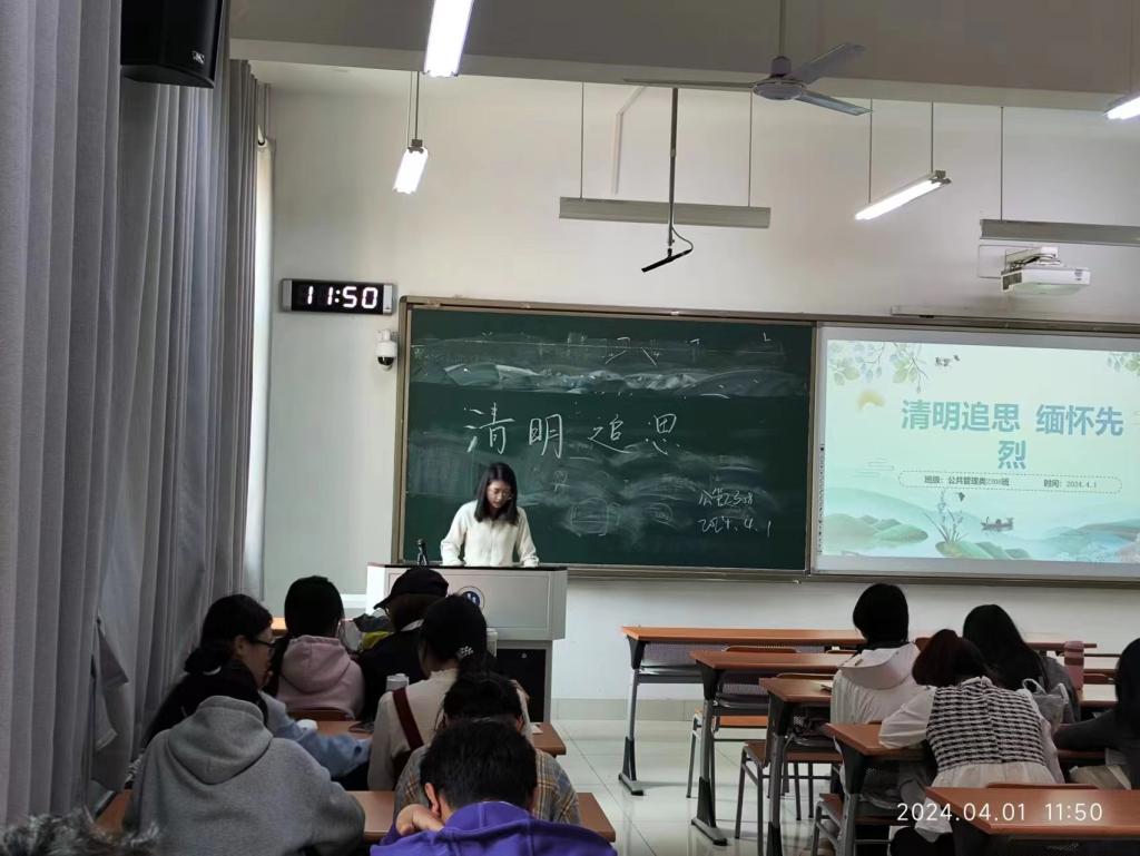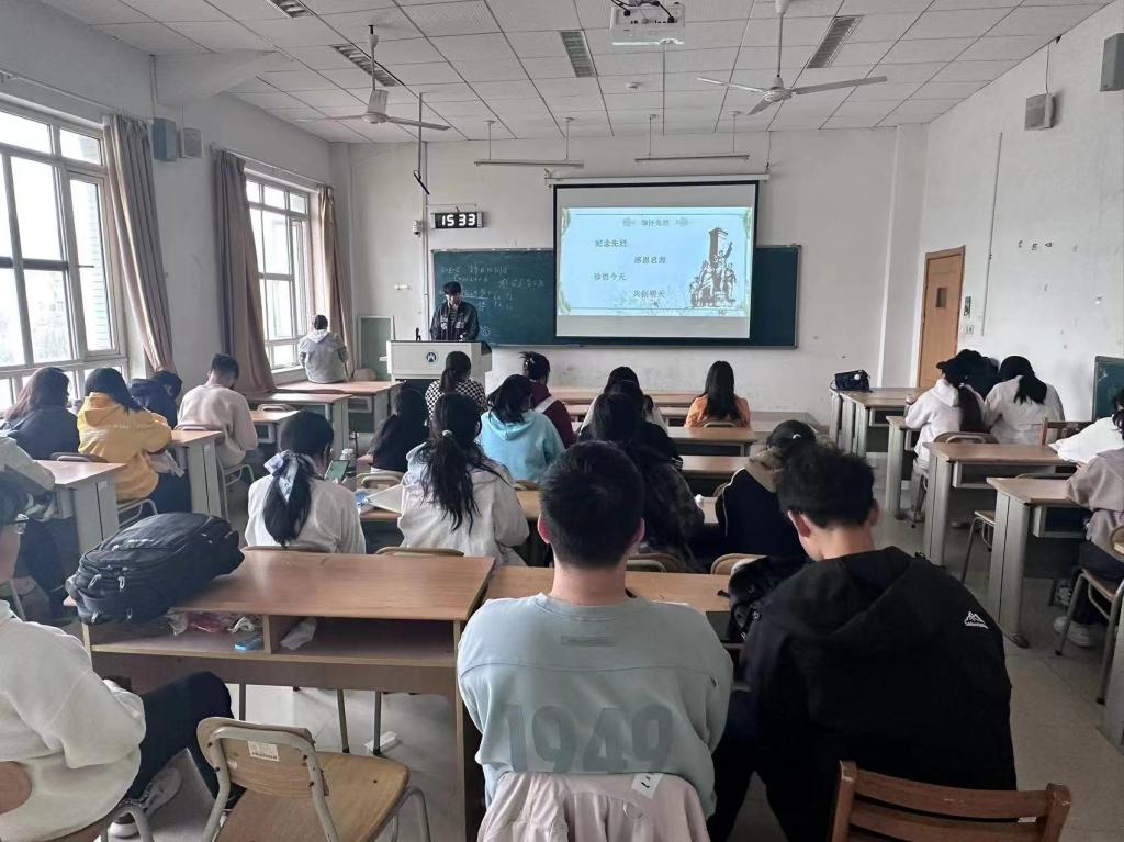 (通讯员 李星玥)又是一年草绿时,正值清明寄哀思。为缅怀革命先烈,加强对新时代青年的爱国主义教育和革命传统教育,激励当代大学生勿忘沉痛国耻、传承先烈遗志,珍惜幸福生活,4月1日至4月3日,我院于圣井校区八号教学楼开展“清明祭英烈”主题班会,此次班会由2023级班团组织,2023级全体同学参加。