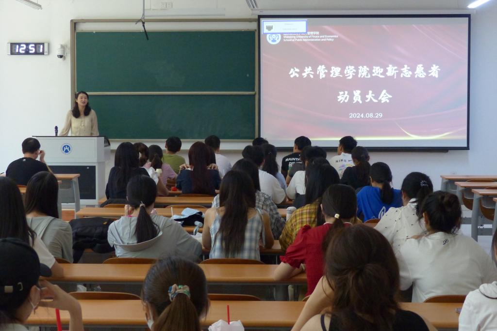 于2024年8月29日中午,在圣井校区8112教室召开了迎新志愿者动员大会。此次大会由学生会姚志卿同学主持,新生辅导员王超、学生会主席团全体成员及全体迎新志愿者共同参加。