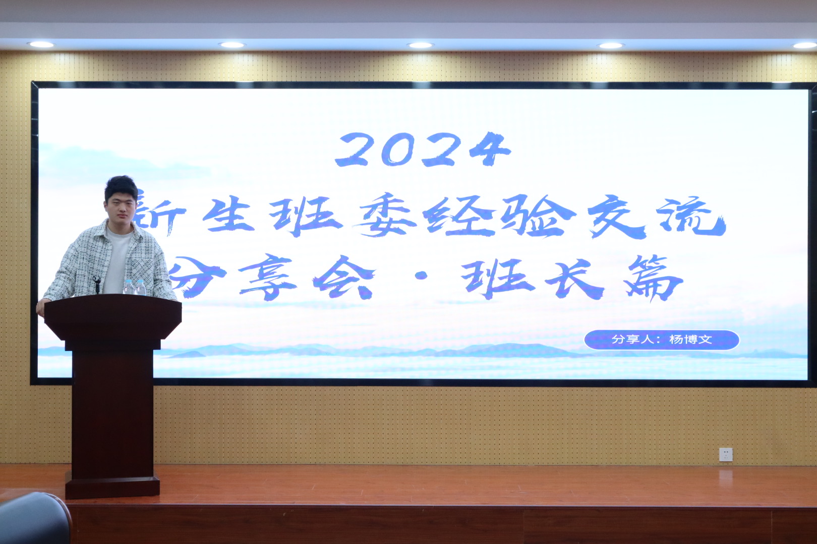 2022级行政管理创新实验班班长杨博文结合自己的工作经验,从班长的责任与义务、工作能力与技巧、实例分析、自我素质与修养提升等角度进行了全面而生动的分享。他强调,班长是整个班级的桥梁和核心,要带头建设学风浓、班风正的优秀班集体,真诚地为同学们服务,带动班集体团结有序发展。