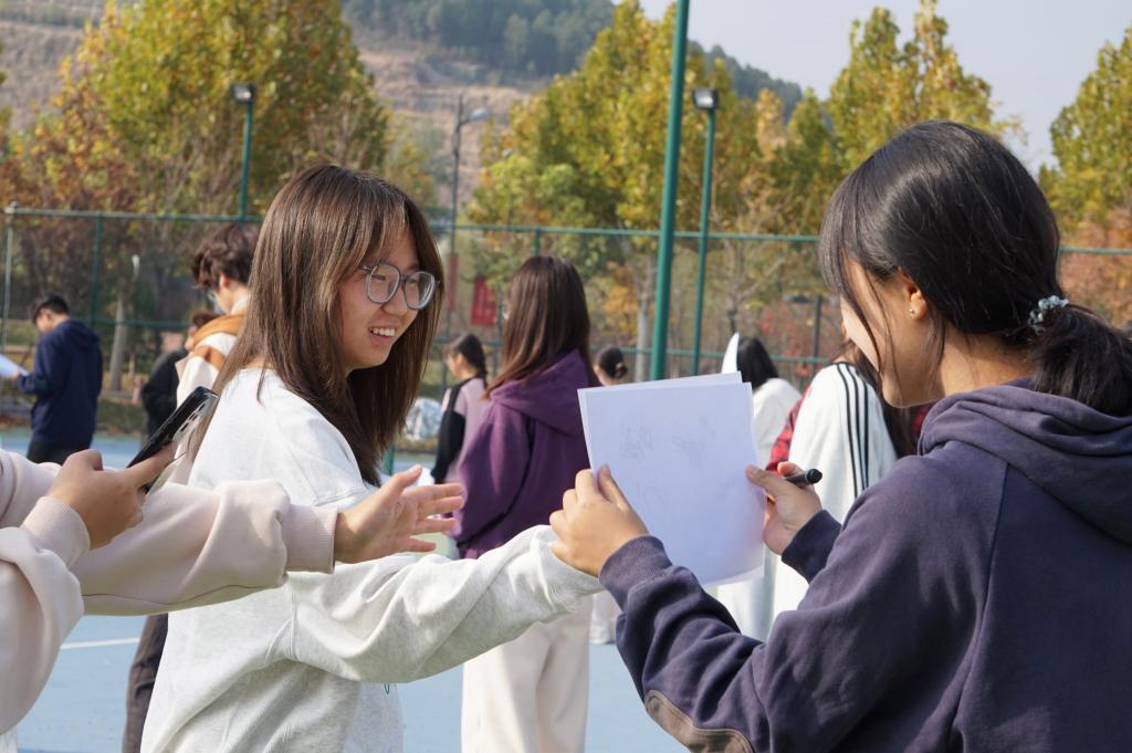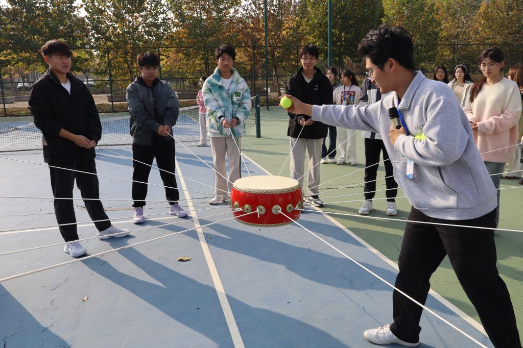 本次素质拓展活动内容丰富,形式多样,包括“报数识人”、“同心击鼓”、“画画传递猜词”、“沙包争夺战”以及“腿夹球”等多个趣味横生的游戏环节。活动伊始,全体学生会成员迅速分为四支队伍,并充分发挥创意,为自己的队伍设计了独特的队名,这一环节极大地增强了队员们的归属感和团队精神,为后续的游戏环节奠定了坚实的基础。