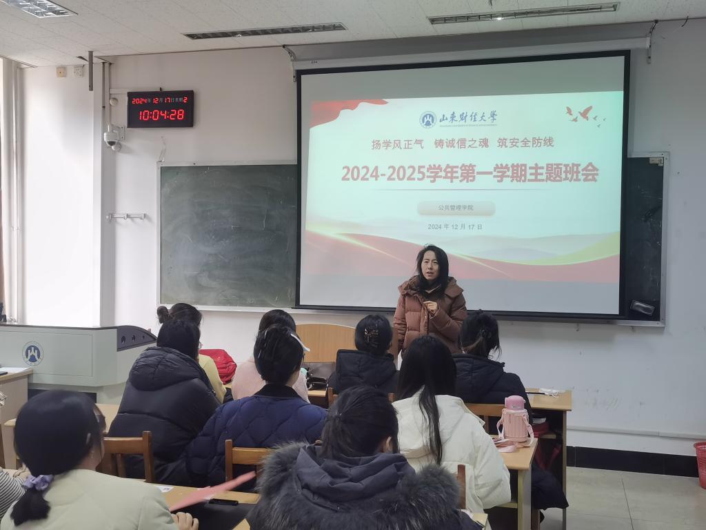 为扎实推进学风建设,加强学生安全教育工作,12月17日,学院在燕山校区2408召开了以“营造优良学风,共筑安全防线”为主题的班会。2024级全体研究生参会。班会由辅导员李昭娜主持。