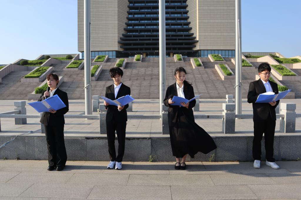于圣井校区图书馆北侧升旗广场举行 “书香润泽心灵,阅读引领未来”—— 献礼世界读书日主题升旗仪式。仪式由学院团委书记、2024级辅导员王超主持。