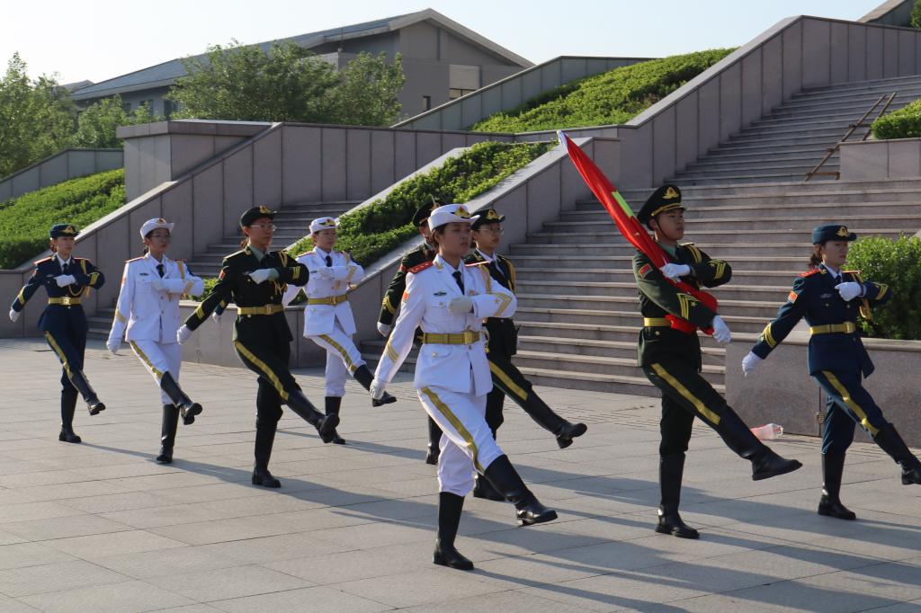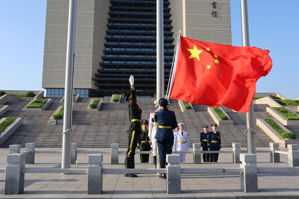 早上七时整,仪式在庄严肃穆的氛围中拉开帷幕,国旗护卫队迈着铿锵有力的步伐护送国旗入场。在庄严的《义勇军进行曲》声中,五星红旗冉冉升起,全体师生肃立注目,齐唱国歌。